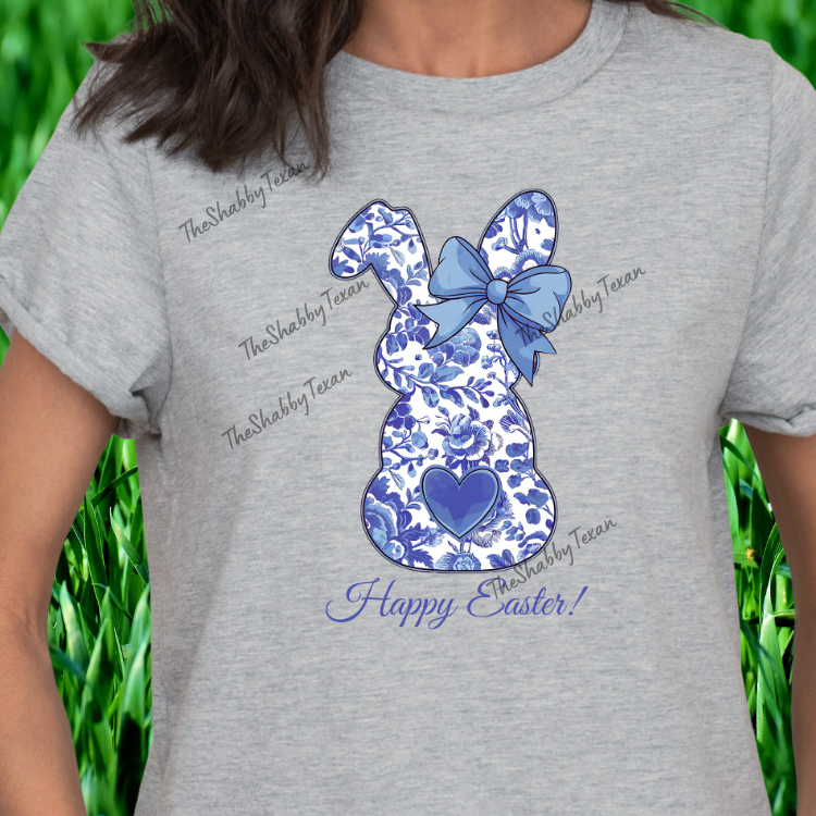 Blue Floral Happy Easter Bunny Shirts